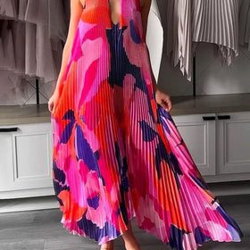 Fudus bedrucktes Swing-Kleid mit tiefem V-Ausschnitt