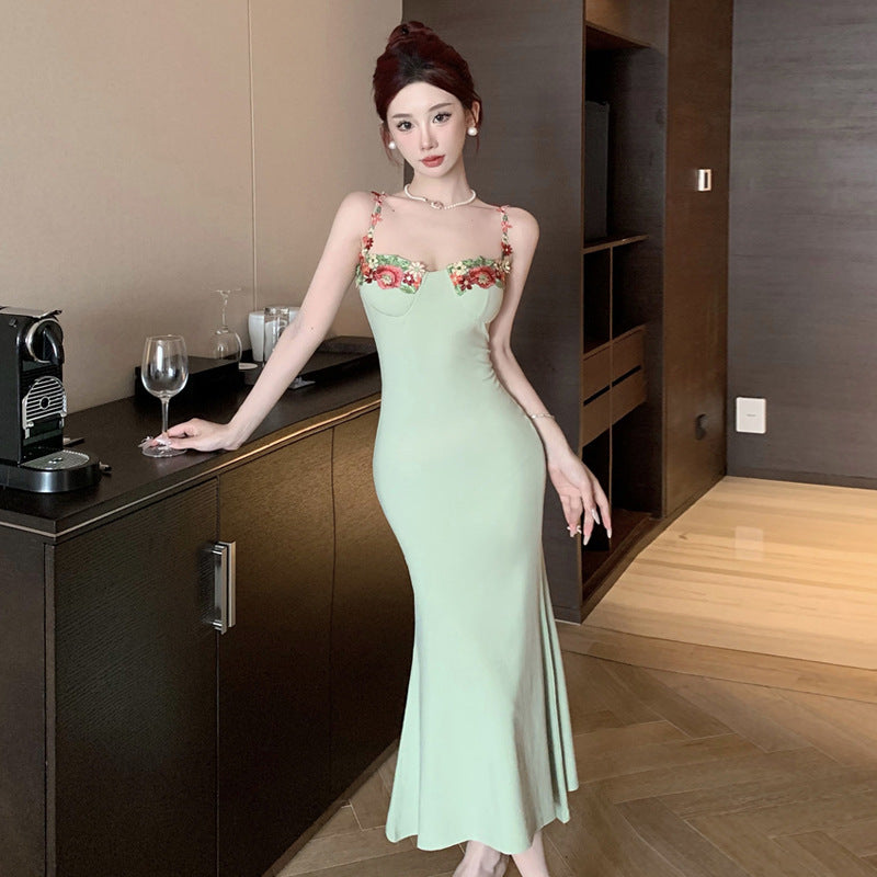 Fudus Blumen-Stickerei Charme Taillenkleid im Meerjungfrau-Stil