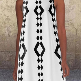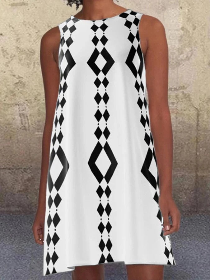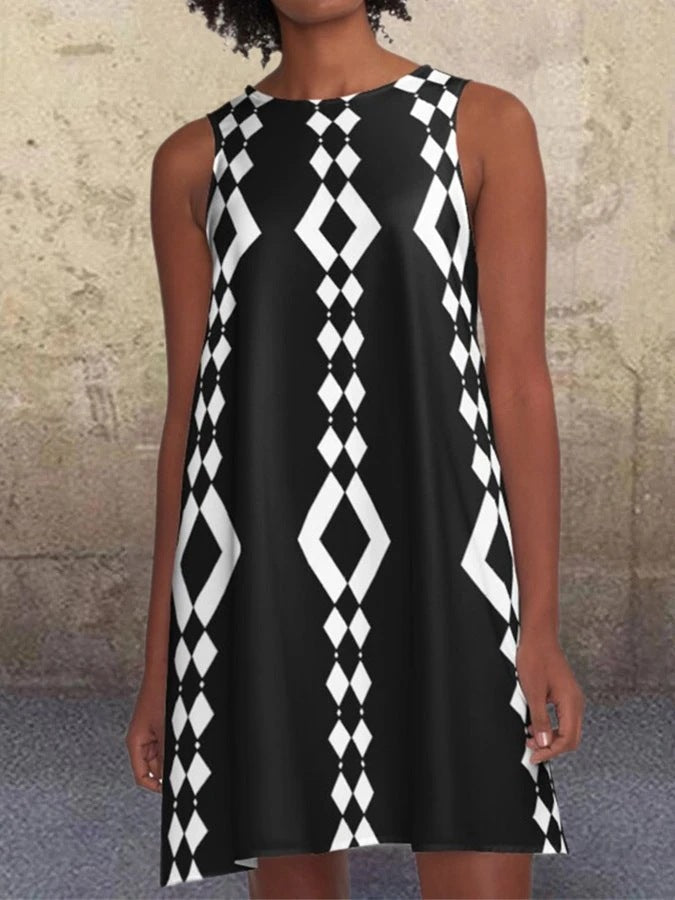 Professionelles, einteiliges Kleid mit mittellangem Rock, Rundhalsausschnitt und ärmellos. Druck/Färbung. Stil: Fundamentaler Stil, Pendlermode.
