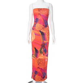 Fudus | Elegantes, bedrucktes, ärmelloses, figurbetontes, hoch tailliertes Maxikleid