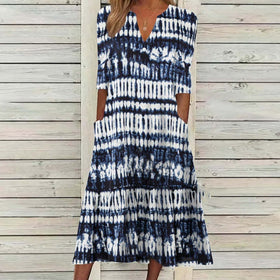 Fudus | Elegantes bedrucktes Kurzarm-Knopfknoppenkleid