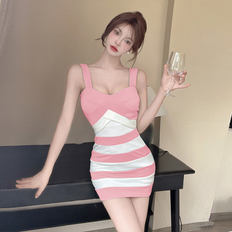 Fudus figurbetontes Trägerkleid in Farbkombination