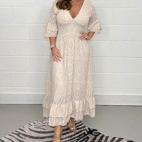 Fudus | Hochgeschnittenes, unifarbenes V-Ausschnitt-Kleid mit Stickerei