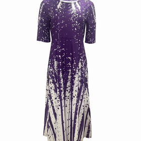 Anspruchsvoller Pendler-Einteiler Maxirock. Rundhalsausschnitt, halbe Ärmel. Wesentlicher Stil, Pendlermode. Druck/Färbe-Verarbeitung.