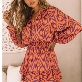 Fudus Langarmkleid mit Stehkragen, elastischer Taille und Druck