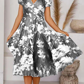 Fudus lässiges Kurzarm-Wickelkleid mit V-Ausschnitt und Print