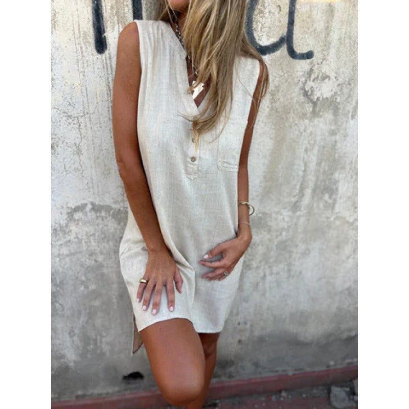 Fudus lässiges, lockeres, ärmelloses Leinenkleid