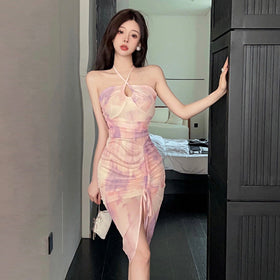 Fudus Ölmalerei Mesh-Kleid mit Halfterausschnitt