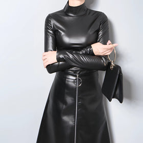 Stilvolles schwarzes Damen-Lederkleid mit hohem Kragen und Reißverschluss – ideal für modebewusste Frauen, die Eleganz und Komfort schätzen. Das hochwertige Leder fühlt sich wunderbar an und sieht edel aus. Der hohe Kragen sorgt für Raffinesse und Wärme. Der Reißverschluss verleiht einen modernen Touch. Schwarz, vielseitig kombinierbar für jede Gelegenheit. Größen S - 4XL. - Hochwertiger, komfortabler Stoff - Stilvolles Design mit hohem Kragen - Vielseitig einsetzbar. Perfekt für Büro, Abendessen oder besondere Anlässe. Setzt Ihre Persönlichkeit gekonnt in Szene.