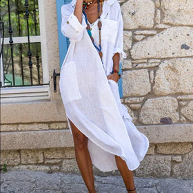 Stylisches & bequemes Baumwollleinen Hemdkleid im lockeren Schnitt. Hochwertiges Baumwollleinen für luftigen Tragekomfort. - Entspannte Passform. - Elegantes Hemdkleid-Design. - Perfekt für den Sommer. - Vielseitig kombinierbar. Ein Must-Have!