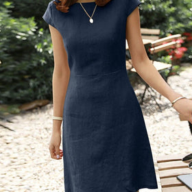 Klassische Schönheit – Dieses Kleid besticht durch seinen zeitlosen Schnitt und zarte Ärmel, perfekt für jede Gelegenheit.