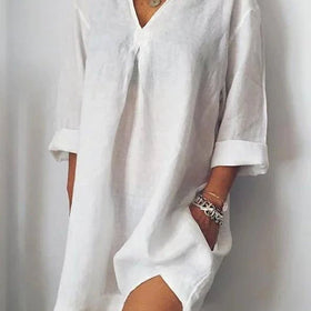 Leichtes Leinenkleid Iona mit V-Ausschnitt: perfekt für warme Sommertage