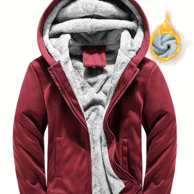 Liazen Fleece Hooded Zipper Jacket, Solid Color Thick Casual Hoodie