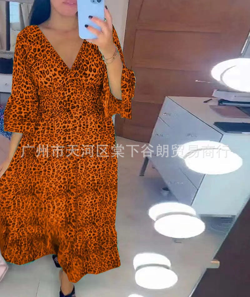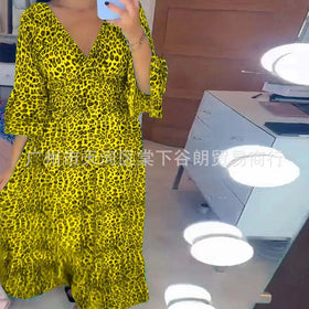 Baumwollkleid im Streetstyle. Midi-Länge, V-Ausschnitt und 3/4 Ärmel.