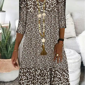 Midikleid von Fudus mit Blumenmuster, V-Ausschnitt und mittellangen Ärmeln