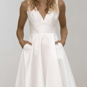 Minimalistisches weißes Brautkleid Astrid mit tiefem V-Ausschnitt und Taschen