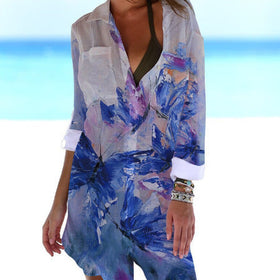 Strandkleid, Strickjacke, Badeanzug, Damenmode, Fudus Print-Hemd für den Urlaub