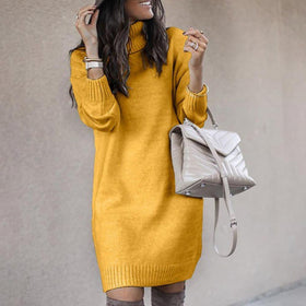 Mit unserem WarmTurtle - Warmes knielanges Strickkleid setzen Sie ein modisches Statement.