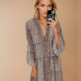 Entfesseln Sie Ihre innere Wildheit mit dem Theodora Leoparden Sommerkleid – Stil und Komfort vereint für ein modisches Statement.
