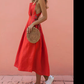 Dieses Neckholder Sommerkleid ist perfekt für sonnige Tage. Stilvolles Design und luftiger Stoff sorgen für angenehme Belüftung und Bewegungsfreiheit. Der Neckholder-Ausschnitt betont Schultern und Nacken, der weiche Stoff umschmeichelt Ihren Körper für einen entspannten, femininen Look.