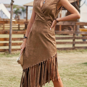 Mit diesem Kleid ziehen Sie alle Blicke auf sich – die Quasten verleihen dem klassischen Design einen modernen Touch, der V-Ausschnitt betont Ihre Weiblichkeit. Es ist perfekt, um sich selbstbewusst und glamourös zu fühlen.