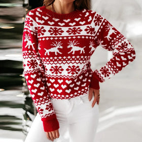 Dieser warme Weihnachtspulli für Frauen verbindet Komfort und festliche Eleganz. Das gestrickte Design mit weihnachtlichen Motiven in Rot und Weiß sorgt für gemütliche Feiertage. Ideal für festliche Anlässe oder entspannte Wintertage.