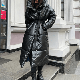 Deshalb gehört "Yieleta | Lange Leder-Pufferjacke mit Gürtel" in Ihren Kleiderschrank: