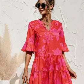 Genießen Sie den Sommer mit einem Kleid, das florale Eleganz und eine luftige Silhouette bietet, um mühelos aufzufallen!