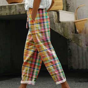 Diese Damenhose im Vintage-Stil vereint klassischen Charme und zeitlose Eleganz. Figurbetonter Schnitt, hohe Taille und weites Bein sorgen für einen schicken Retro-Look. Perfekt für elegante und legere Anlässe.